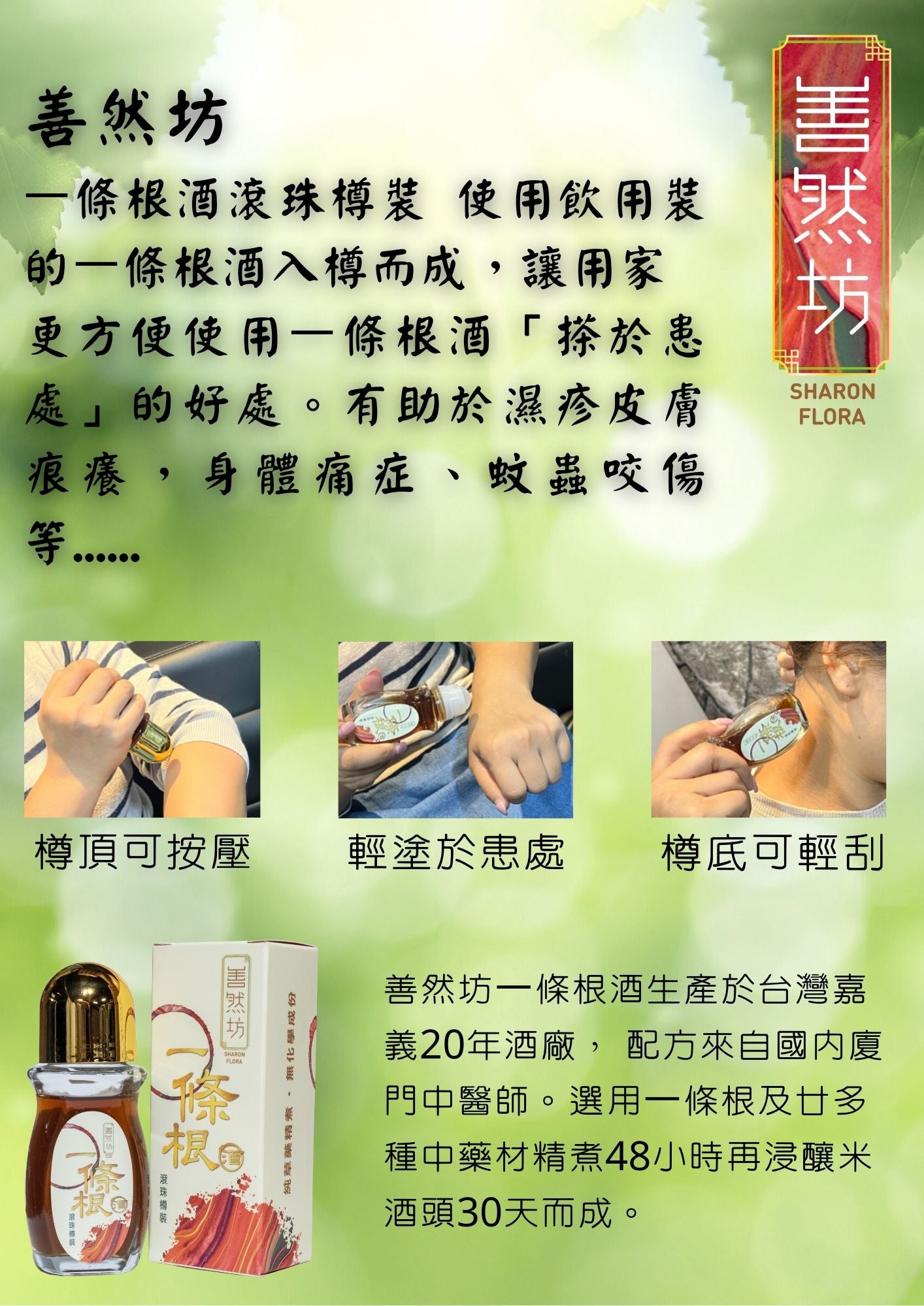 "One Root Health Wine" uses Taiwan's One Root ( scientific name: Qianjinba ) , and is combined with more than 20 precious Chinese medicinal materials (Ligusticum chuanxiong, angelica root, black dates, rehmannia glutinosa, wolfberry, cassia twig, cinnamon...) slow-cooked for 48 hours, and then Soak rice wine for 30 days.