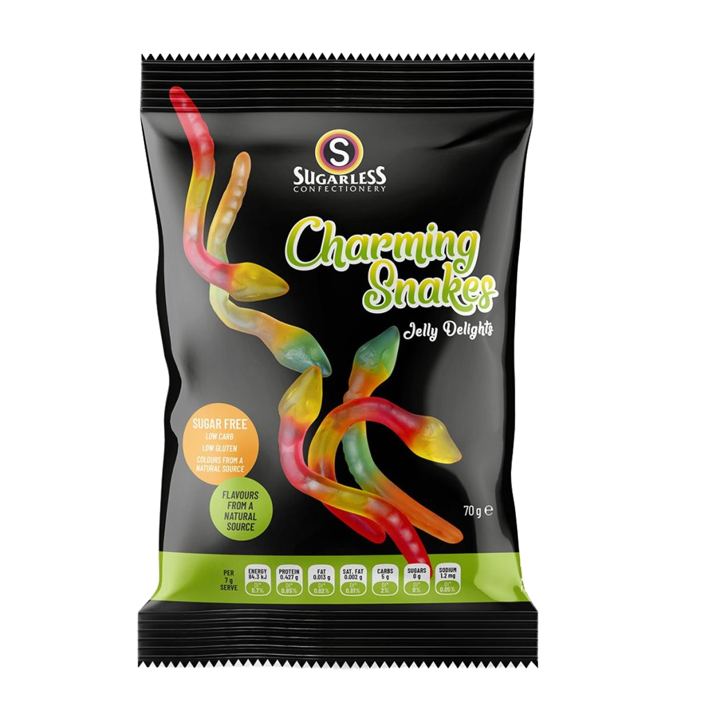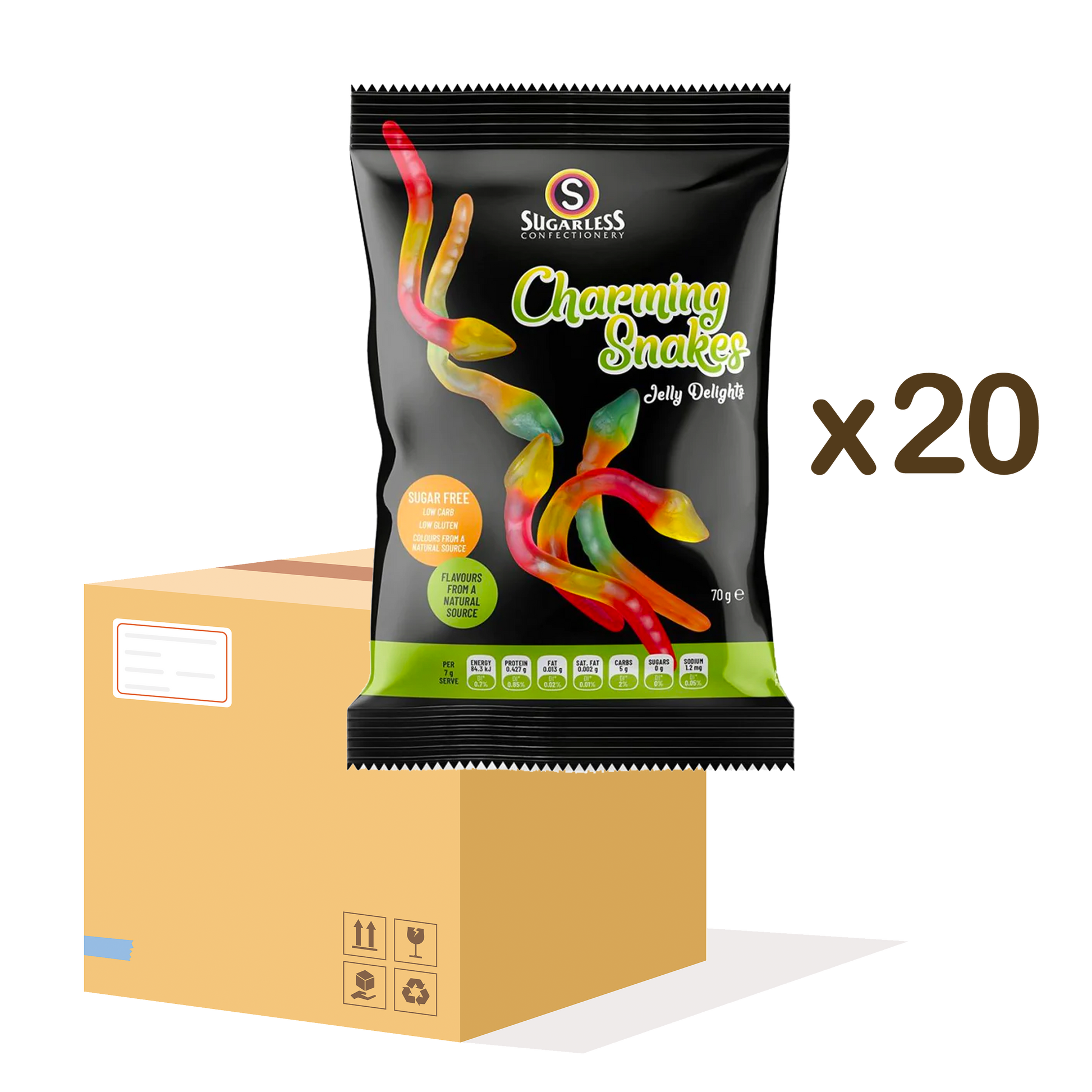 【1 box of 20 packs】Sugarless Charming Snakes - 70g